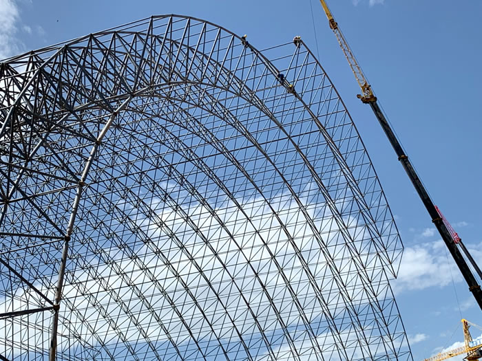 (2)网架加工前应对现场尺寸进行复测,确认无误后方可进行加工、安装;网架制作、运输、安装应遵守《空间网格结构技术规程》JGJ7-2010、《钢网架张掖螺栓球节点》JG/T 10-2009、《钢网架张掖螺栓球节点用高强度螺栓》 GB/T 16939-2016、《张掖钢结构张掖工程张掖施工规范》 GB50755-2012、《张掖钢结构张掖工程施工质量验收标准》 GB50205-2020。